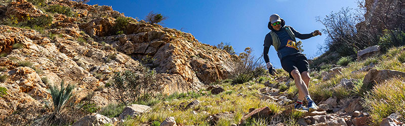 From the summit it is largely ‘all downhill’ for 10km to the finish line at the Standley Chasm café although the highly technical terrain and loose rock make it a taxing descent through Reveal Saddle and then the finish arch further on.